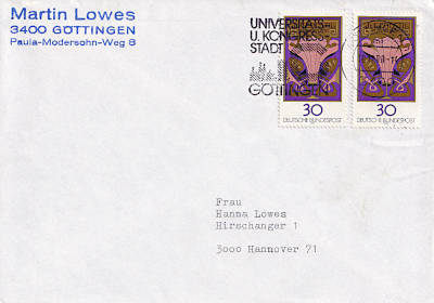 Inlandsbrief (1-20 g) vom 10.12.1980 (8. Periode) frankiert mit 2 Briefmarken a 30 Pfennig (=60 Pfennig) |