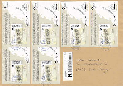 Inlandsbrief mit Einwurf-Einschreiben (501-1 000 g) vom 03.07.2024 (11. Periode) frankiert mit 6 Blocks a 0,85 € (=5,10 €, 2,75 Brief 2,35 Einwurf-Einschreiben) |