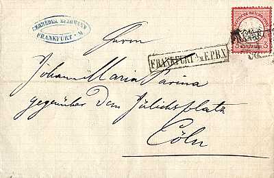 Inlandsbrief (1-15 g) vom 21.04.1872 frankiert mit einer Marke a 3 Kreuzer (=3 Kreuzer)