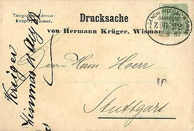Inlandsdrucksache (1-50 g) vom 15.08.1887 frankiert mit einer Marke a 3 Pfennig