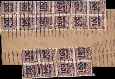 Inlandsbrief (1-20 g) vom 05.10.1923 (19. Periode) frankiert mit 20 Marken a 100 000 Mark auf 15 Pfennig (=2 Millionen Mark)