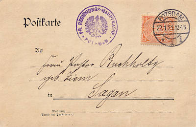 Inland postcard from 22.01.1921 (5. Period) franked with one stamp a 30 Pfennig(=30 Pfennig)
