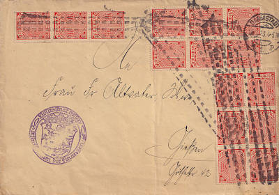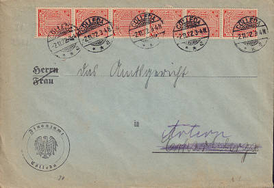 Local cover (1-20 g) from 16.09.1922 (8. Period) franked with one stamp a 1 Mark (=1 Mark) |