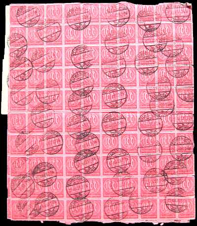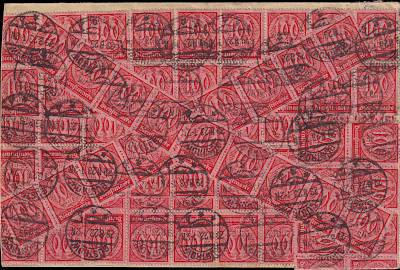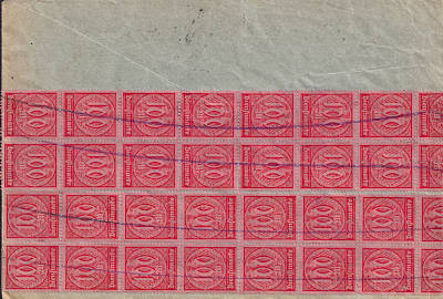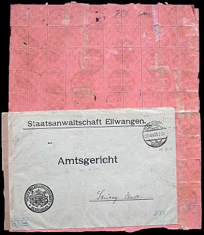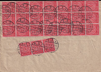 Inlandsbrief mit Zustellungsurkunde (1-20 g) vom 04.07.1923 (14. Periode) frankiert mit 9 Marken a 100 Mark (=900 Mark, 300 Brief 300 Zustellung 300 Urkunde) |