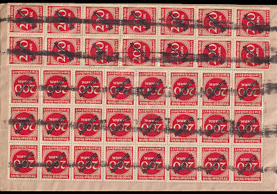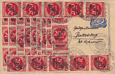 Inland postcard from 25.08.1923 (16. Period) franked with 40 stamps a 200 Mark