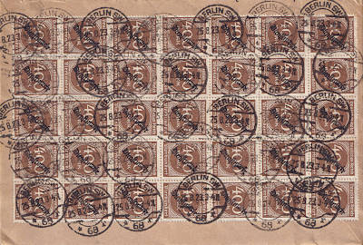 Inland cover (1-20 g) from 25.08.1923 (16. Period) franked with 50 stamps a 400 Mark(=20 000 Mark)
