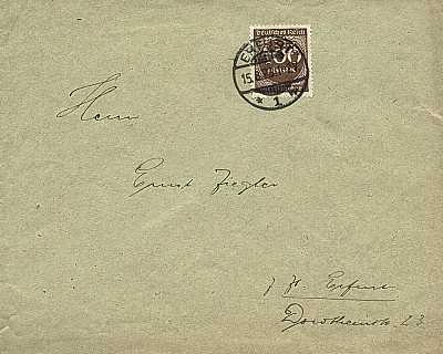 Local cover (1-20 g) from 15.08.1923 (15. Period) franked with one stamp a 400 Mark (=400 Mark)
