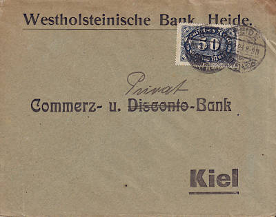 Inland cover (1-20 g) from 25.01.1923 (12. Period) franked with one stamp a 50 Mark (=50 Mark) |