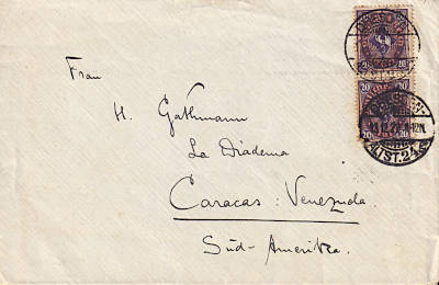 Foreign cover (1-20 g) from 13.12.1922 (10. Period) franked with 2 stamps a 20 Mark (=40 Mark) |