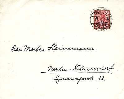 Ortsbrief (1-20 g) vom 18.08.1919 (3. Periode) frankiert mit einer Marke a 10 Pfennig(=10 Pfennig)