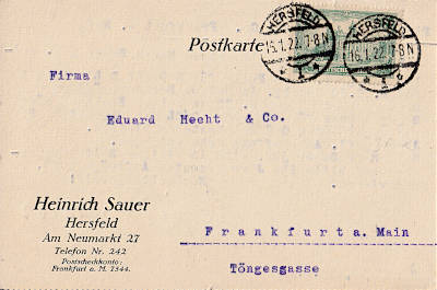 Inland postcard from 16.01.1922 (7. Period) franked with one stamp a 1,25 Mark