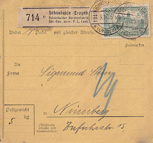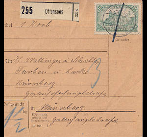 Inland parcel card (1 500 g, < 75 km) from 23.12.1920 (5. Period) franked with one stamp a 1,25 Mark (=1,25 Mark)