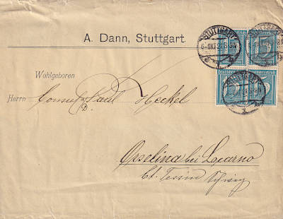 Auslandsdrucksache (51-100 g) vom 06.10.1921 (6. Periode) frankiert mit 4 Marken a 15 Pfennig (=60 Pfennig)