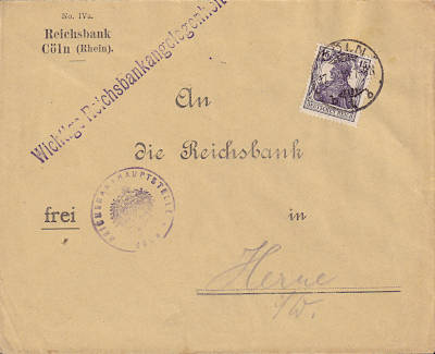 Inland cover (1-20 g) from 17.01.1919 franked with one stamp a 15 Pfennig (=15 Pfennig) |