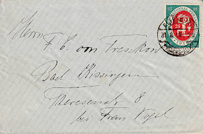 Inland cover (21-250 g) from 31.08.1919 franked with one stamp a 25 Pfennig (=25 Pfennig) |