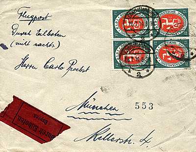 Inlandsbrief mit Eilzustellung und Luftpost (1-20 g) vom 06.02.1919 frankiert mit einer Marke a 1 Mark (=1 Mark) |