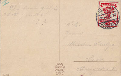 Ortspostkarte vom 23.11.1919 frankiert mit einer Marke a 10 Pfennig (=10 Pfennig)