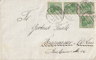 Inland cover (21-100 g) from 24.06.1921 franked with 4 stamps a 20 Pfennig