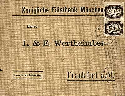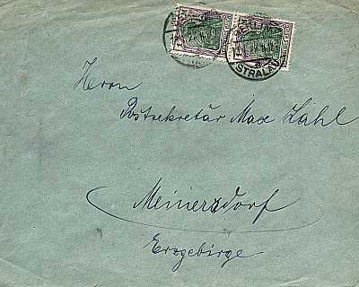Inland cover (1-20 g) from 13.01.1922 franked with 2 stamps a 1 Mark (=2 Mark) |