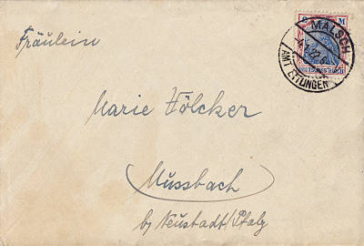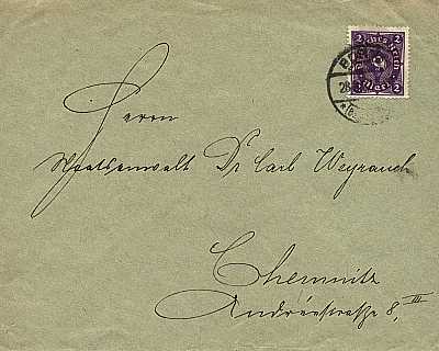 Inland cover (1-20 g) from 24.04.1922 franked with one stamp a 2 Mark (=2 Mark) |