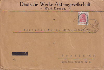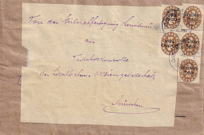 Inland cover (21-100 g) from 24.03.1922 franked with 6 stamps a 50 Pfennig (=3 Mark) |