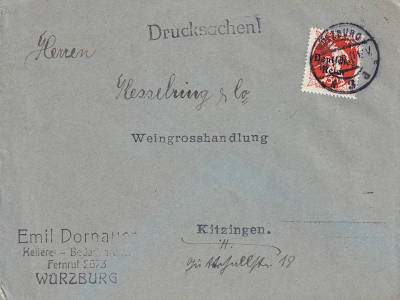 Inland printed matter (1-50 g) from 22.02.1922 franked with one stamp a 50 Pfennig (=50 Pfennig)