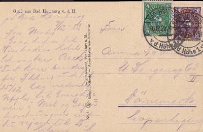 Foreign postcard from 06.12.1922 franked with 2 stamps (=24 Mark)