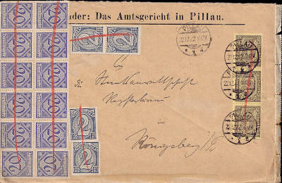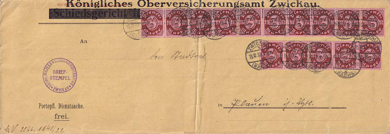 Inlandsbrief (21-100 g) vom 22.12.1922 frankiert mit 67 Marken (=35 Mark)