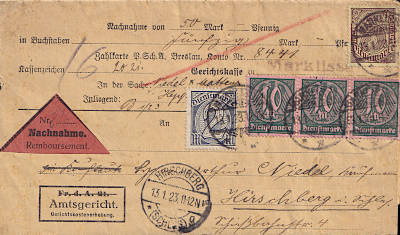 Inlandsbrief mit Nachnahme (1-20 g) frankiert mit 5 Marken (=37 Mark, 25 Brief 12 Nachnahme)