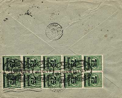 Foreign cover (1-20 g) from 25.09.1923 franked with 3 stamps a 250 000 Mark on 400 Mark (=750 000 Mark) |