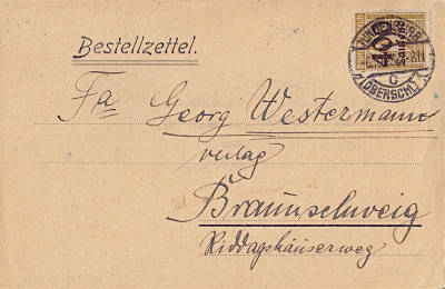 Inland book order (1-25 g) from 06.10.1923 franked with one stamp a 400 000 Mark on 40 Pfennig (=400 000 Mark)