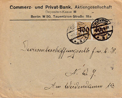 Local cover (1-20 g) from 08.10.1923 franked with 2 stamps a 400 000 Mark on 40 Pfennig (=800 000 Mark)