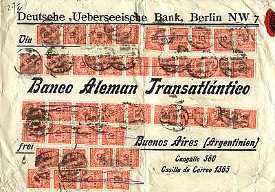 Auslandsbrief (1-20 g) vom 22.10.1923 frankiert mit 6 Marken a 5 Millionen Mark (=30 Millionen Mark) |