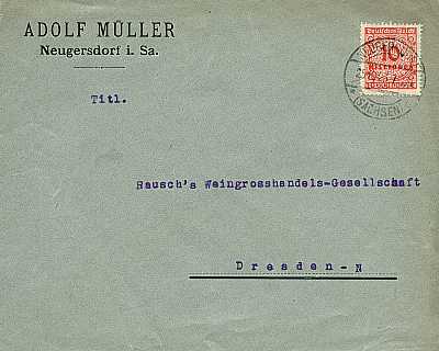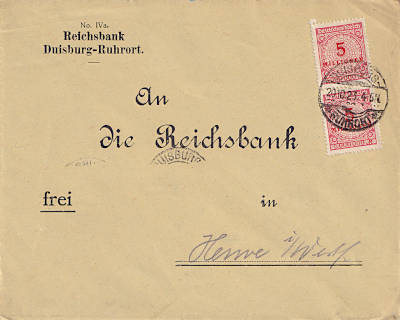 Inlandsbrief (1-20 g) vom 20.10.1923 frankiert mit 2 Marken a 5 Millionen Mark (=10 Millionen Mark) |