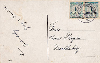 Inlandspostkarte bis 5 Worte vom 31.10.1923 frankiert mit 2 Marken a 1 Million Mark(=2 Millionen Mark)