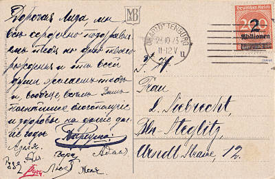 Ortspostkarte vom 23.10.1923 frankiert mit einer Marke a 2 Millionen Mark auf 200 Mark (=2 Millionen Mark)