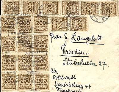 Inland cover (1-20 g) from 19.11.1923 franked with one stamp a 10 Billion Mark (=10 Billion Mark) |