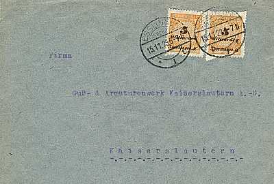 Inland cover (1-20 g) from 15.11.1923 franked with 2 stamps a 5 Billion Mark (=10 Billion Mark) |