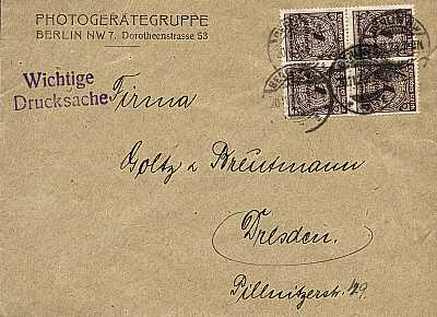 Inlandsdrucksache (1-25 g) vom 20.11.1923 frankiert mit 4 Marken a 1 Milliarde Mark(=4 Milliarden Mark)