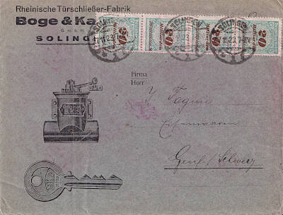 Auslandsbrief (1-20 g) vom 27.11.1923 frankiert mit 4 Marken a 20 Milliarden Mark (=320 Milliarden Mark)