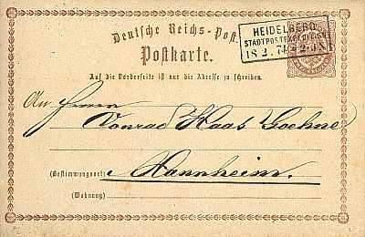 Inlandspostkarte vom 07.04.1873 frankiert mit einem Wertstempel a ½ Groschen (=½ Groschen)