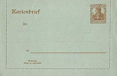 Inlandskartenbrief mit einem Wertstempel a 15 Pfennig (=15 Pfennig) |
