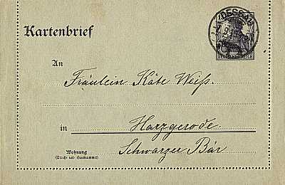 Inlandskartenbrief vom 20.10.1904 (1. Periode) frankiert mit einem Wertstempel a 10 Pfennig (=10 Pfennig) |