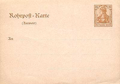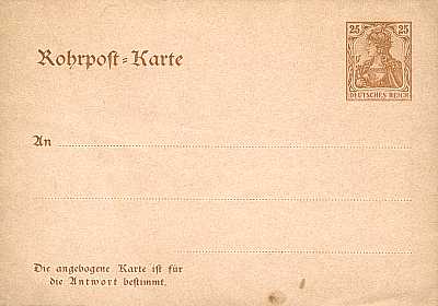 Ortspostkarte mit Rohrpost vom 02.09.1912 (1. Periode) frankiert mit einem Wertstempel a 25 Pfennig (=25 Pfennig) |