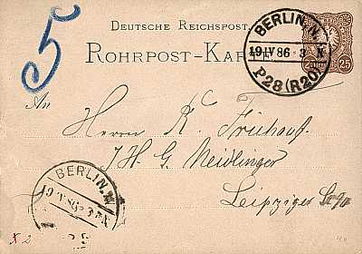 Inlandspostkarte vom 05.06.1888 frankiert mit einem Wertstempel a 5 Pfennig (=5 Pfennig) |