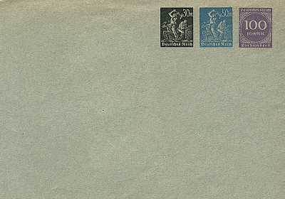 Umschlag mit 3 Wertstempel a 30 Mark, 50 Mark und 100 Mark (=180 Mark)
