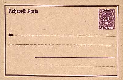 Postkarte mit Rohrpost mit einem Wertstempel a 200 Pfennig (=200 Pfennig)