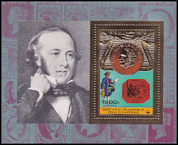 16.12.1978 100th anniversary of the death of Sir Rowland Hill with perforation or withoutseparation with embossed gold metal foil
