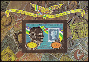 09.12.1978 100th anniversary of the death of Sir Rowland Hill with perforation or without separation withembossed gold metal foil