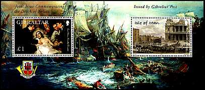 Bogen mit Briefmarken aus 2 PostgebietenGibraltar-Ausgabe